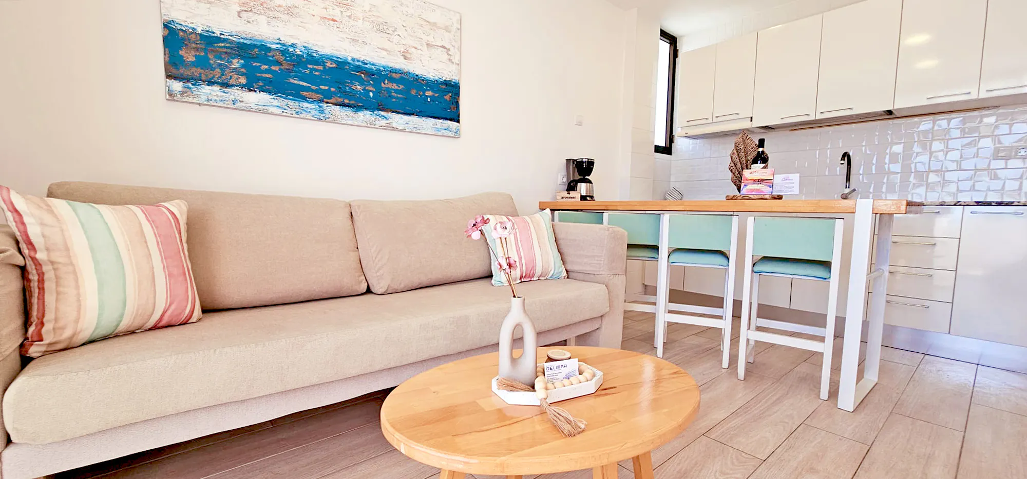 Welcome to our DELUXE SEAVIEW apartments, perfectly positioned on the middle and top floors, granting you unparalleled panoramas of Puerto Rico, the glistening sea, the sandy shore, and the bustling harbor. These meticulously refurbished apartments have been outfitted with every amenity imaginable, ensuring that your stay is absolutely faultless.